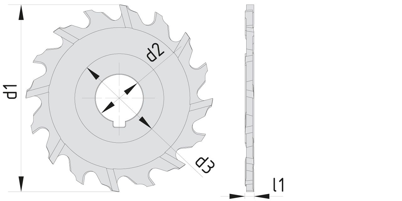 Schmale Scheibenfräser mit grober Zahnteilung für tiefe Schnitte in nichtrostende Stähle, hochfeste Ne-Metalle wie Si-haltiges Aluminium und Titan. Die Kreuzverzahnung sorgt für ein sehr ruhiges Schnittverhalten.
