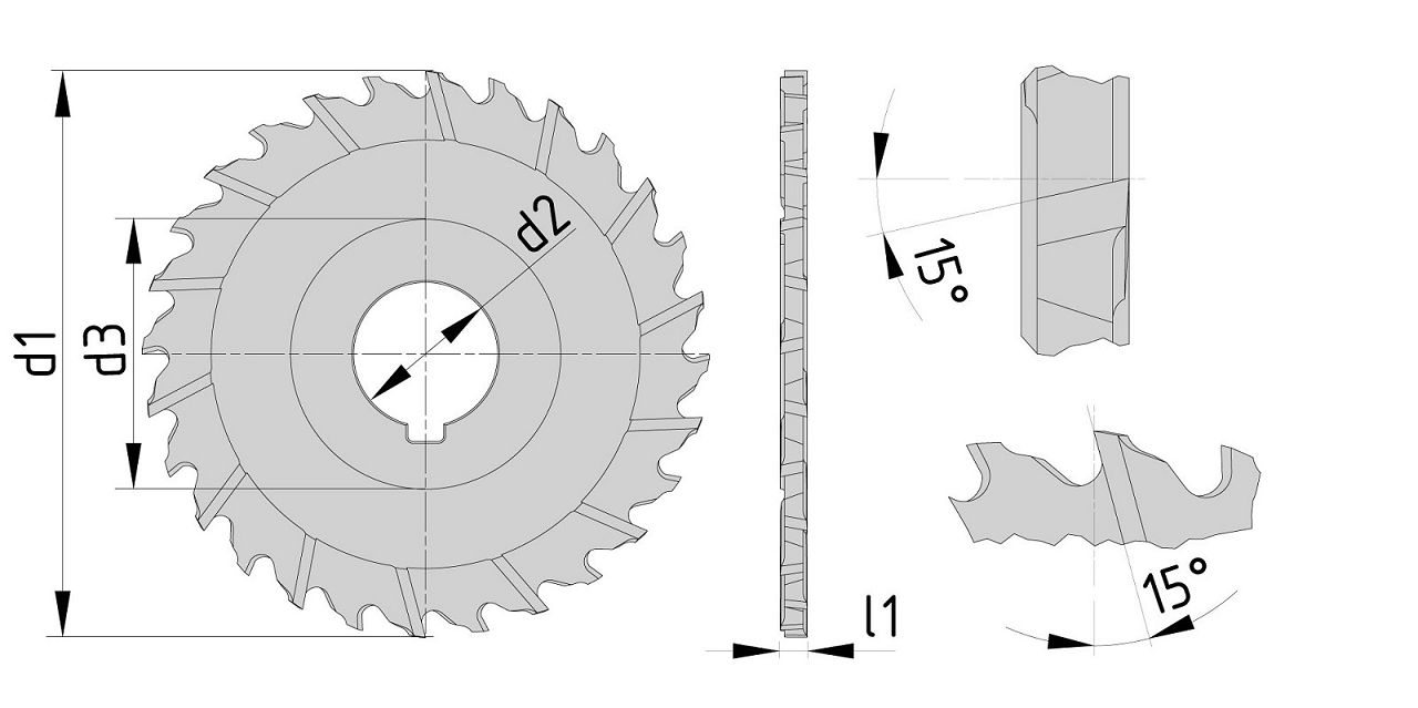 Schmale Scheibenfräser für tiefe Schnitte in Bau- und Werkzeugstahl sowie Guss, wobei eine saubere Oberfläche an den Schnittflächen gewünscht wird. Die Kreuzverzahnung sorgt für ein ruhiges Schnittverhalten.