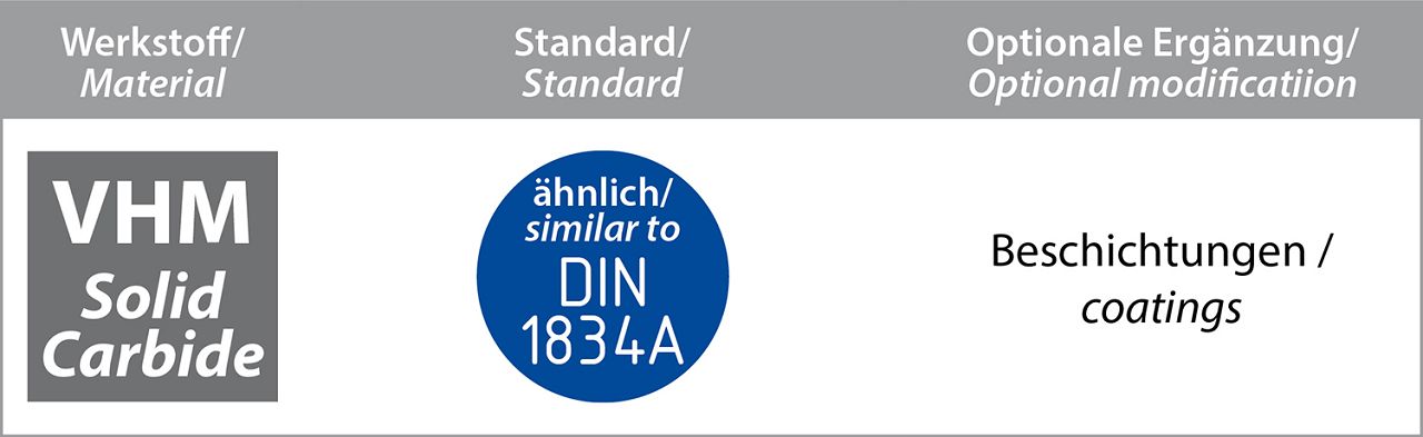 Geeignet für Werkstoffe bis 1600 N/mm² Festigkeit.