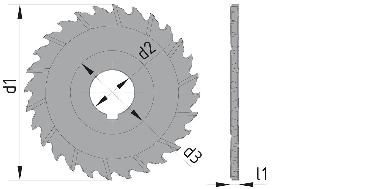 Schmale Scheibenfräser mit grober Zahnteilung für tiefe Schnitte in nichtrostende Stähle, hochfeste NE-Metalle wie Si-haltiges Aluminium und Titan sowie Kunststoffe. Durch Kreuzverzahnung und Stirnzähne wird ein ruhiges Schneidverhalten mit sauberer Oberfläche erreicht.